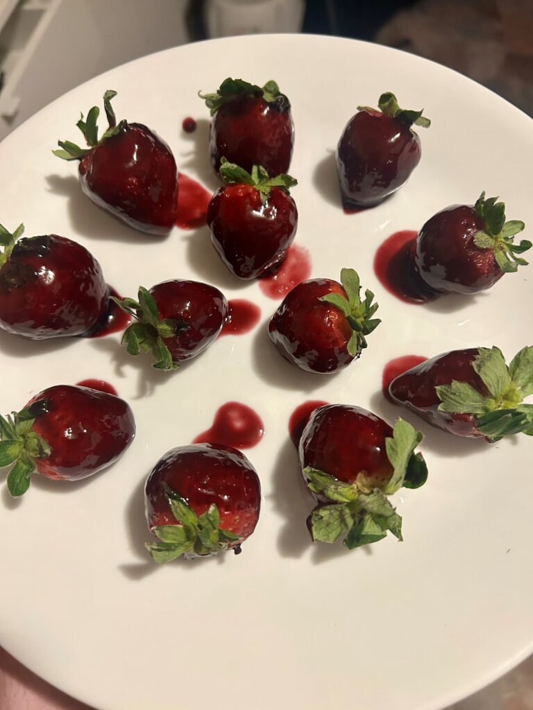 Honorable mention also goes to the dessert featured in this video, which I also made. Fresh strawberries glazed with jam which, aside from being totally gorgeous, were so simple and delicious.